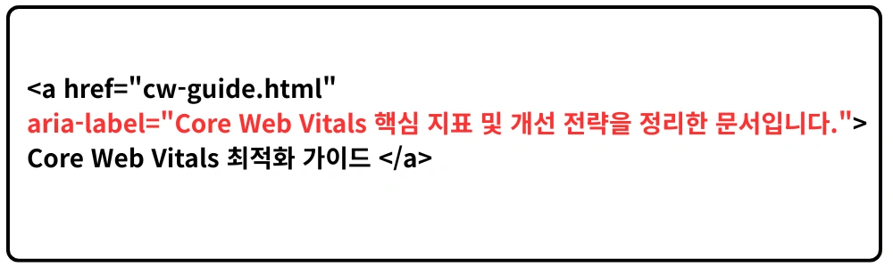 ๊ตณ์ด ๋งํฌ์ ์ถ๊ฐ ์ ๋ณด๋ฅผ ์ ๊ณตํ๊ณ ์ ํ๋ค๋ฉดaria-label ์์ฑ์ ํ์ฉํ ์ ์์ต๋๋ค. ๋ค๋ง, ์ค์ ๋ก ์ป์ ์ ์๋ SEO๋ UX์์ ํจ๊ณผ๋ ์ ํ์ ์ด๋ฉฐ, ํฐ ๊ฐ์น๋ ๊ธฐ๋ํ๊ธฐ ์ด๋ ต์ต๋๋ค.